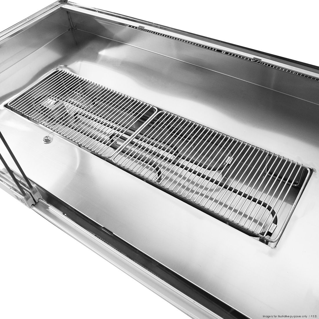 - Fits 5x 1/1GN or double row ½ GN pan (Pans not included)