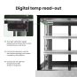 This impressive cake display has two levels of shelving, strong secop compressors for functionality, LED lighting to see inside the interior, self-evaporating drainage to remove moisture, digital temperature control, sliding glassed rear doors, triple glazed front with heated filaments – all encased within a stainless-steel framework.