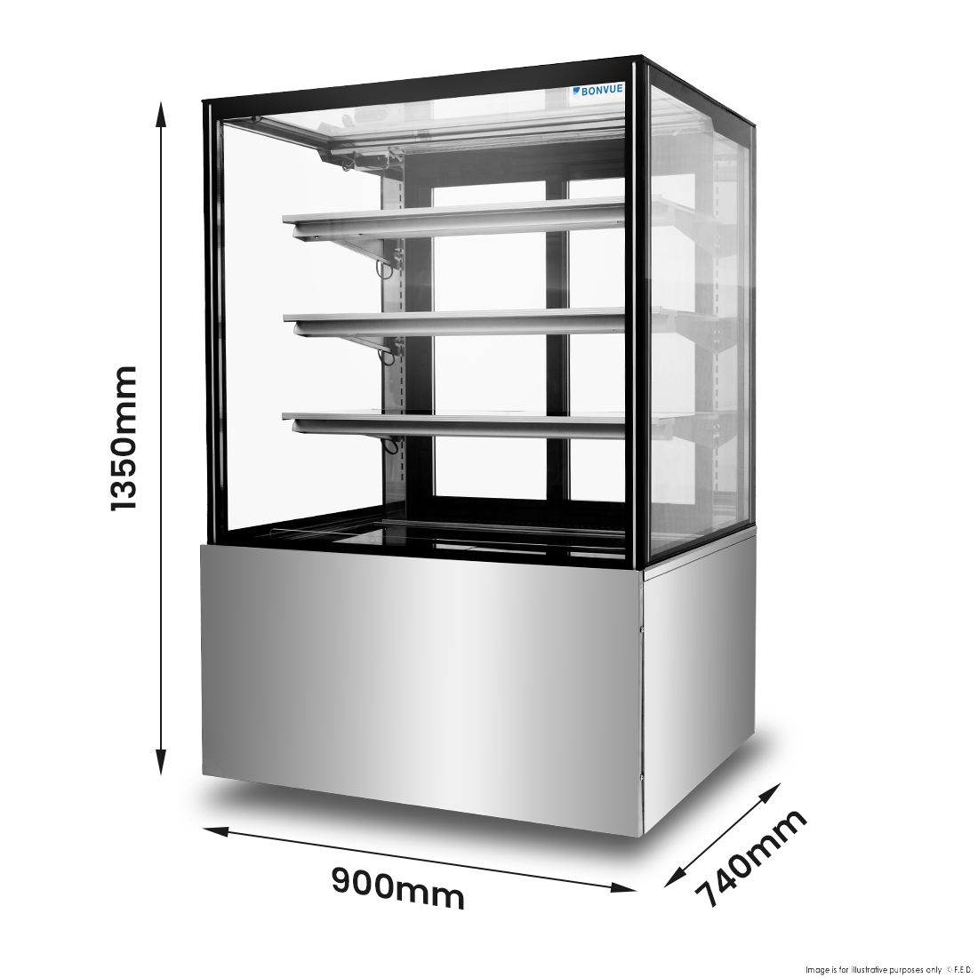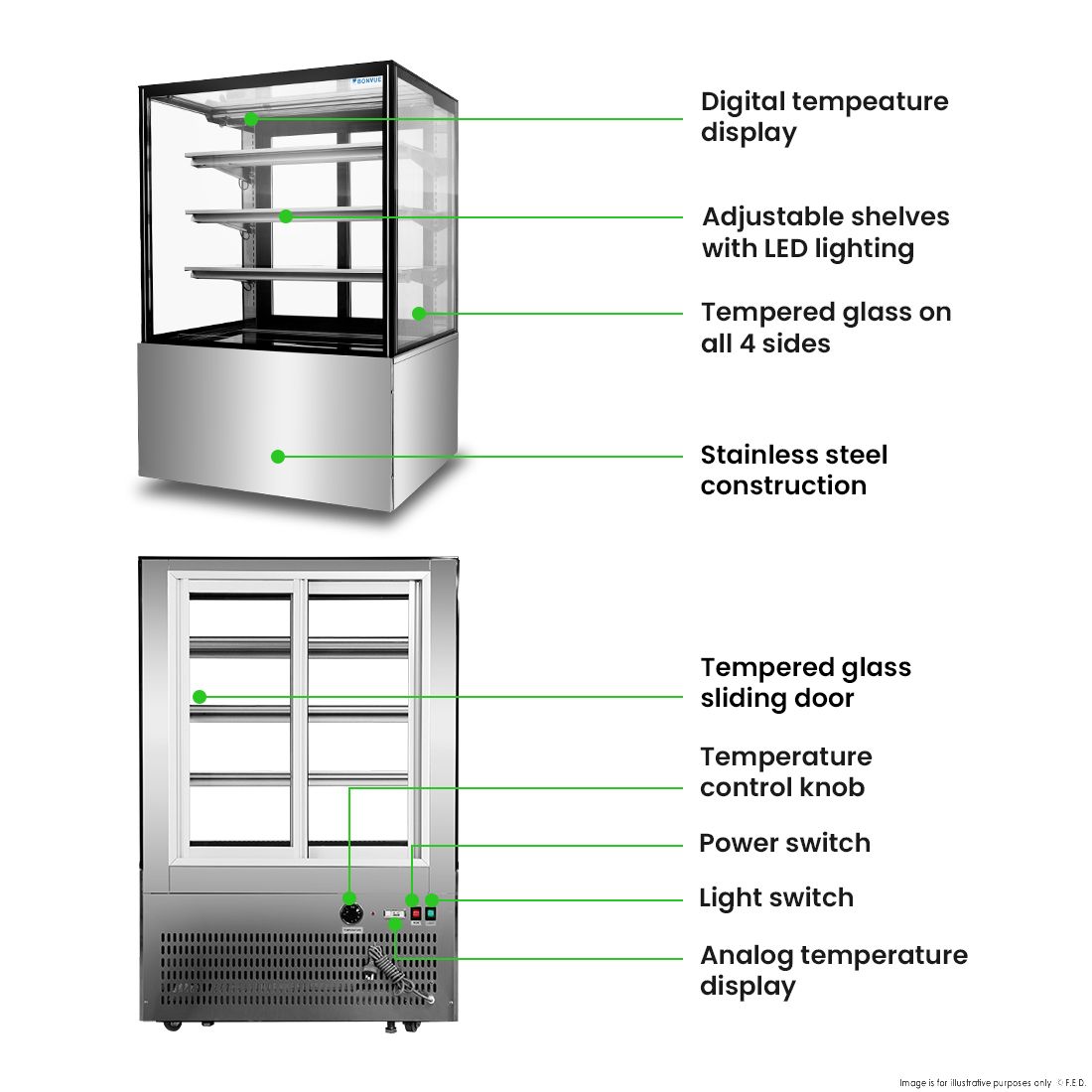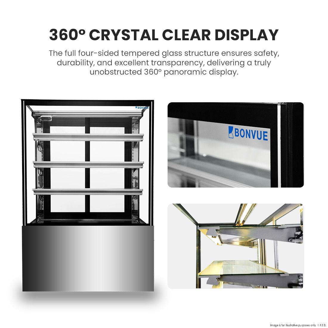 Bonvue Heated Display Cabinet combines robust construction with advanced functionality for Australian food businesses. Featuring 4-sided double-layer tempered glass and an AISI304 base display area, it ensures durability and hygiene. The 360° panoramic display with warm yellow LED lighting enhances product visibility, while the digital temperature control maintains optimal heating. Ideal for bakeries and cafés, its sliding rear doors and mobility-ready design offer effortless access and positioning. Energy-efficient with uniform heat distribution, this cabinet meets Australian commercial standards for reliability and performance.