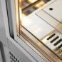 This impressive food display is strong and built with almost double the power of the smaller heated display units from Bonvue. This display has two levels of industrial shelving, strong secop compressors for functionality, LED lighting to see inside the interior, self-evaporating drainage to remove moisture and a triple glazed front with heated filaments – all encased within a stainless-steel framework.