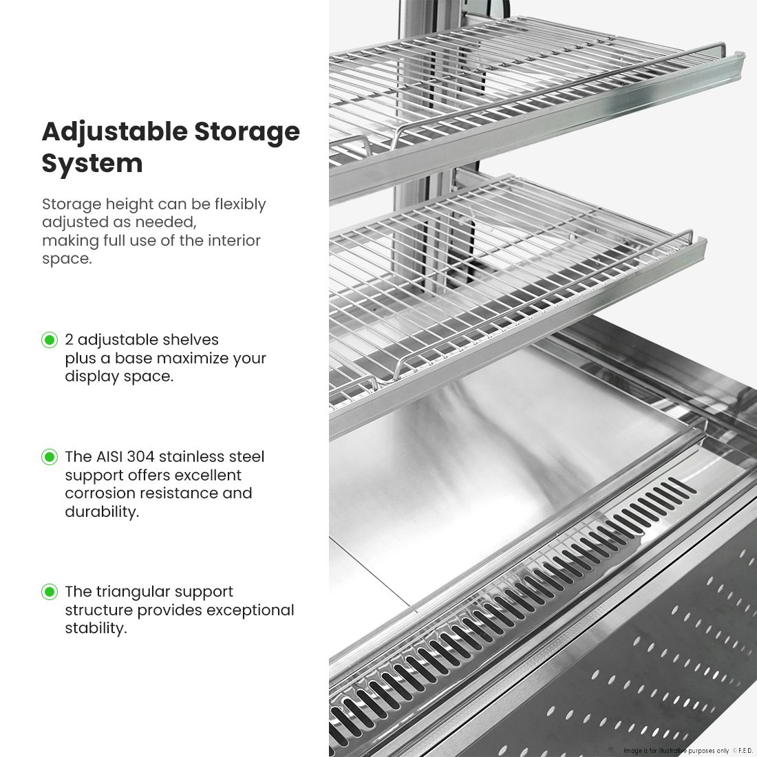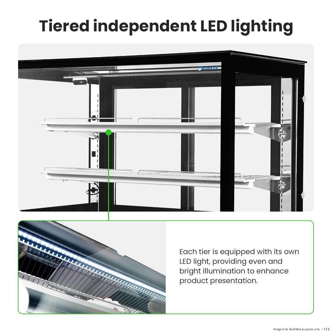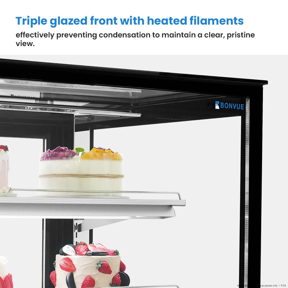 One of the more powerful and bigger cake display units from catering equipment brand, Bonvue. This cake display unit aims to provide an eye-catching space to present your culinary work, straight from the kitchen.