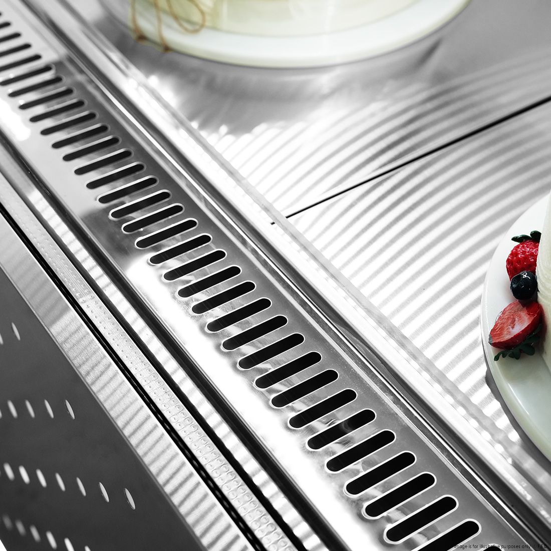 This impressive cake display has two levels of shelving, strong secop compressors for functionality, LED lighting to see inside the interior, self-evaporating drainage to remove moisture, digital temperature control and triple glazed front with heated filaments – all encased within a stainless-steel framework.