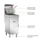 • Food particles fall below burner tubes into cold zone which increases oil life